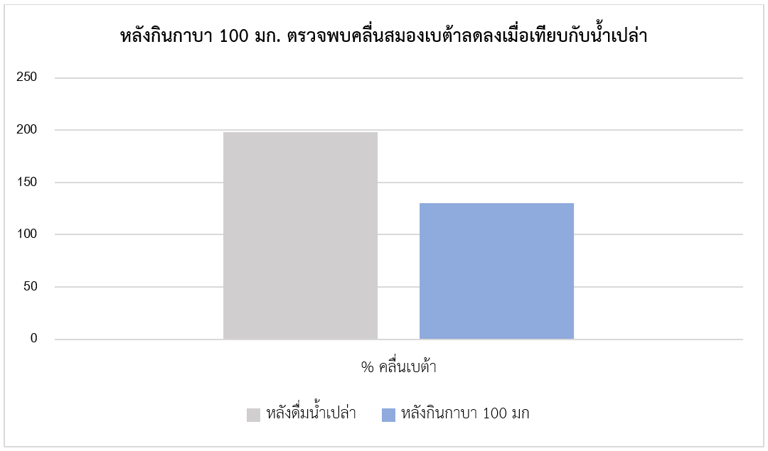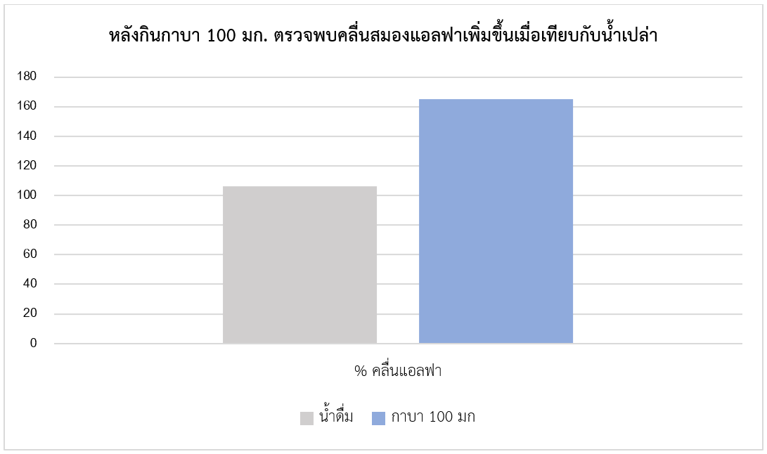 จากการศึกษาทางคลินิกพบว่าหลังรับประทานกาบา 100 มิลลิกรัม สามารถตรวจพบคลื่นสมองแอลฟาเพิ่มขึ้นมากกว่ากลุ่มที่ดื่มน้ำเปล่า